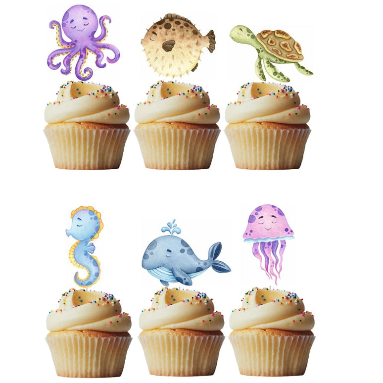 Watercolour Under the Sea Cupcake Toppers Pk 6